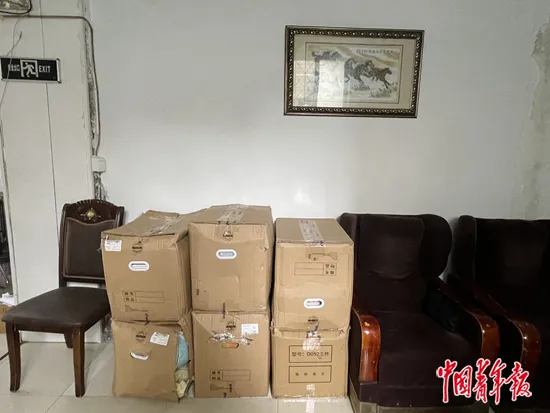 梁雲鵬辦公室存放着買房人寄來的行李。