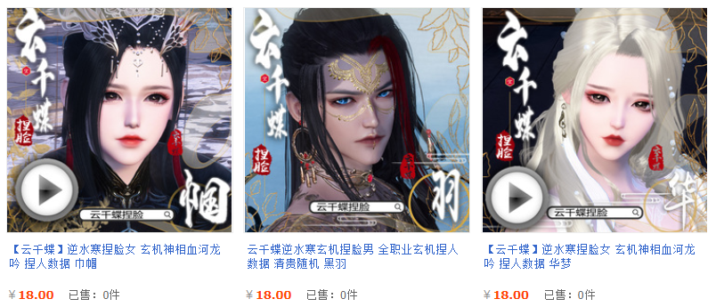 更別説,雲千蝶還會販賣已完成的捏臉數據。它們價格雖然更低,但所需的時間成本也要少上很多。