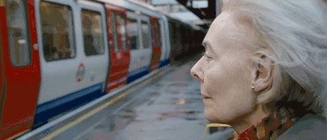 但地鐵開過來了,她卻從來不上車,坐在這裏只為聽站台播放的那句“Mind the gap”。原來,那是她逝去的丈夫、戲劇演員奧斯瓦爾德·勞倫斯(Oswald Laurence)的聲音。