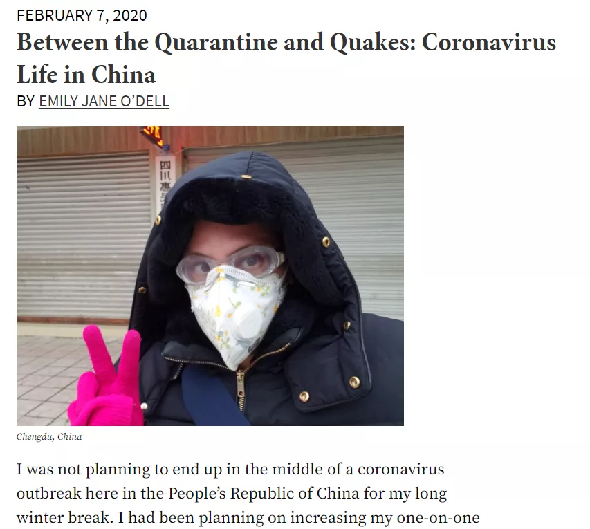 因此,我也好奇,在網絡查找到這位叫Emily Jane O’Dell(艾米麗)博士曾發表的文章。原來,她在去年疫情之初,也以第一人稱寫過在中國如何安度疫情大隔離的日子,她對中國文化其實有很親善的理解,每到中國的少數民族地區,都喜歡穿着當地服飾,解讀當地民俗文化,當然你也可以理解為東方主義表現,或是很多人標籤的第三世界代言的“白左“美國人。