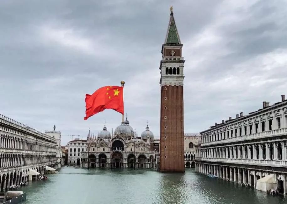 看到數據後,意大利人心情異常複雜。有人在威尼斯地標聖馬可廣場的照片上,P上了一面五星紅旗,寓意當地商家應該多努力,時刻警惕華商“攻城略地”。