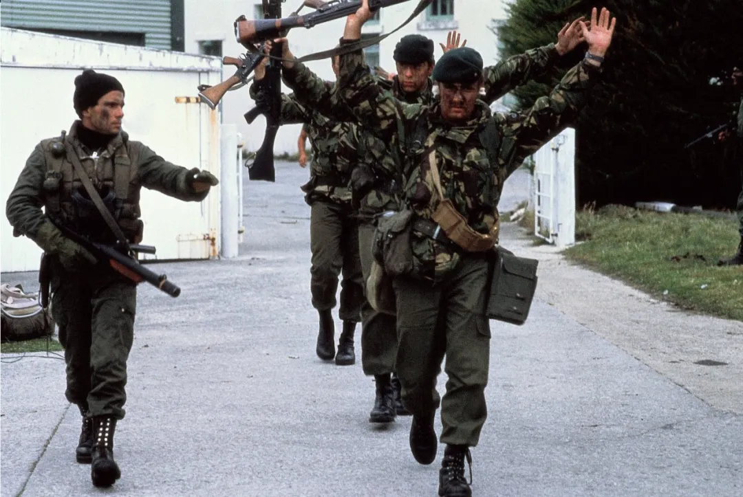 ▲1982年4月,英軍士兵向阿根廷士兵投降。