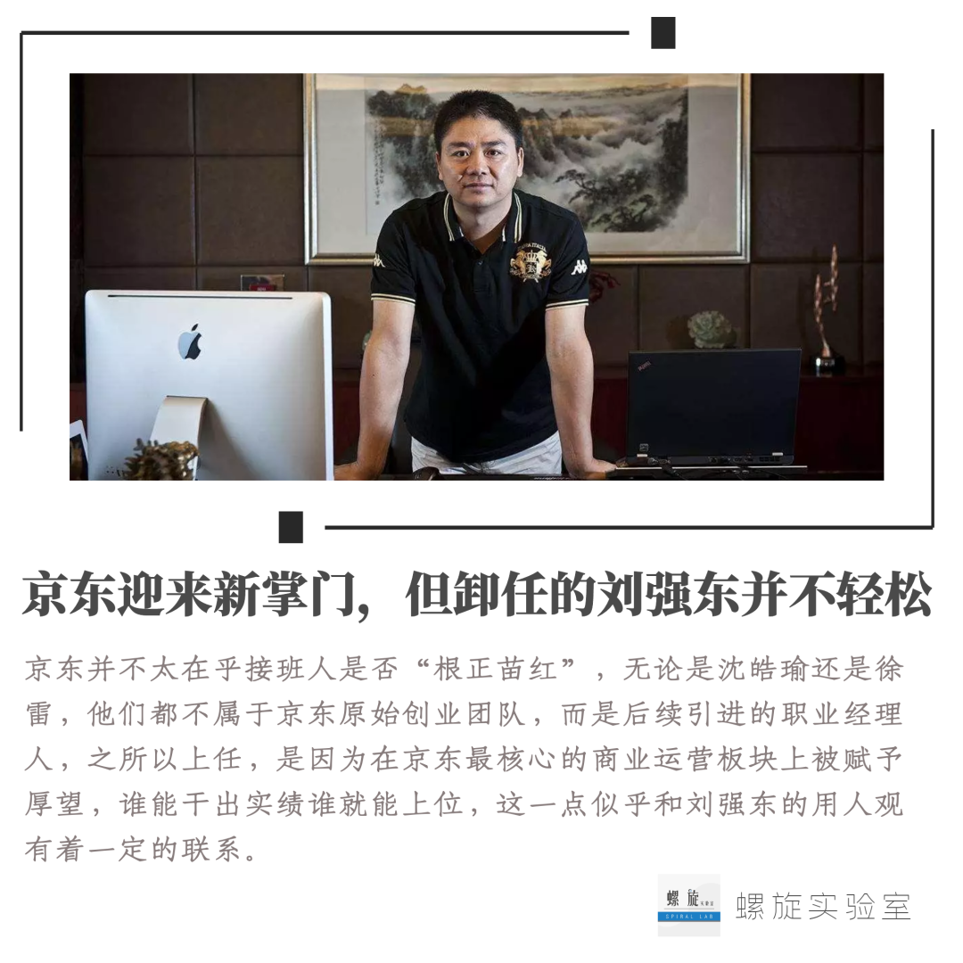 京東並不太在乎接班人是否“根正苗紅”,無論是沈皓瑜還是徐雷,他們都不屬於京東原始創業團隊,而是後續引進的職業經理人,之所以上任,是因為在京東最核心的商業運營板塊上被賦予厚望,誰能幹出實績誰就能上位,這一點似乎和劉強東的用人觀有着一定的聯繫。