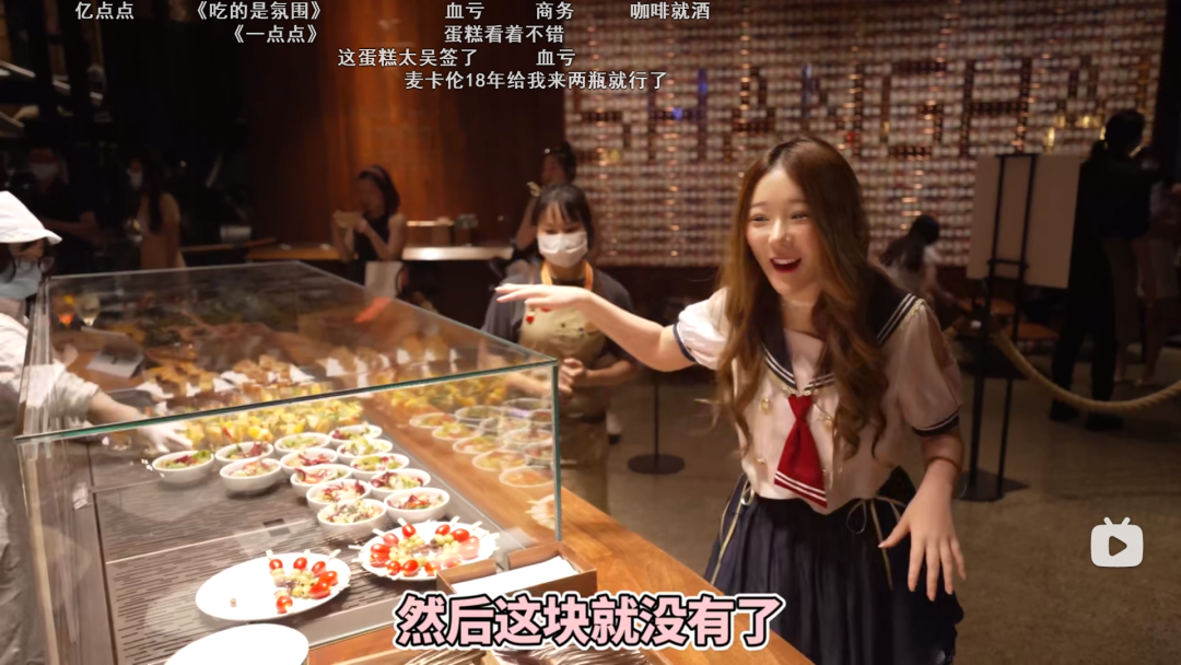 跟着鏡頭巡視一圈,餐品只有四款無酒精雞尾酒,甜品沙拉,麪包披薩,幾種肉類,一款冰淇淋。
