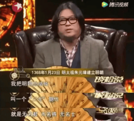 他表示明朝是三無朝代,無明君、無名將、無名士……朱元璋棺材板都要按不住了。