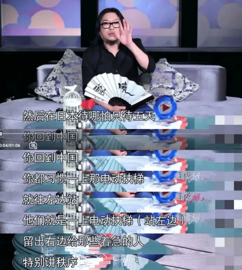他還要吹捧日本人素質高,説自己從日本回國以後,人直接變得“特別講秩序” ,影射中國人不講秩序。