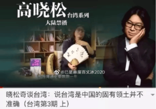 在海外視頻平台,高曉松甚至還曾發表過“台灣是中國的固有領土並不準確”的觀點。