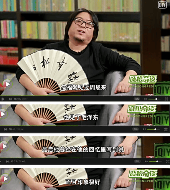 而像這樣的胡編亂造不在少數,在《西安事變》一集中,高曉松説:“高福源見過周恩來,也見過毛澤東,而且印象極好,最後他曾經在他的回憶錄中寫到”。