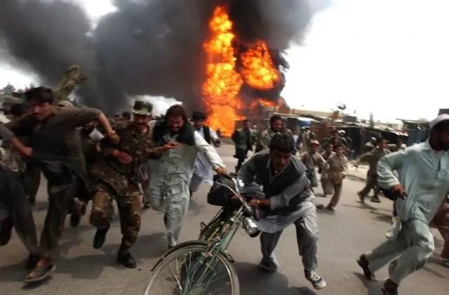 2003年6月,民眾逃離喀布爾一處爆炸現場。圖源:新華社