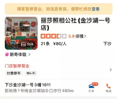 以“網紅經濟”之城杭州為例,目前大眾點評上的自拍館有25家左右,其中不少還掛着“新店”的後綴。去年大約同時期,杭州的自拍館僅有三四家,其中“麗莎照相公社”在小紅書上獲得大量曝光,讓其它人嗅到市場機會並紛紛跟進。