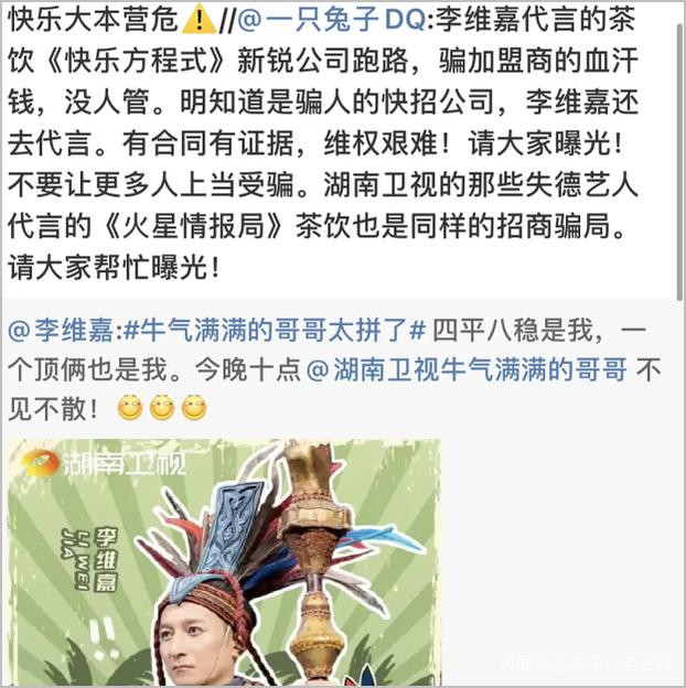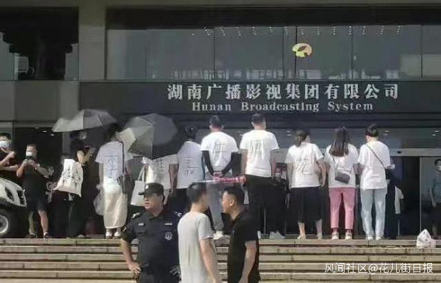 今日,有人曝光 湖南台 主持人李維嘉代言出事。根據公開的照片可見,有羣眾在 " 湖南廣播影視有限公司 " 門口聚集,身上都穿着白色衣服,背後寫着 " 李維嘉 失德藝人 “。
