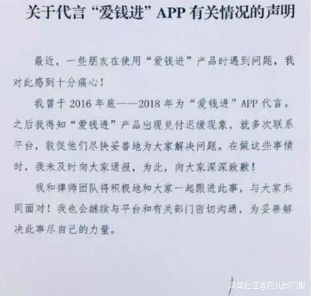 在 " 代言暴雷 " 這一方面,早前湖南台著名主持人汪涵就暴過雷,其所代言的產品被曝欠錢跑路,最後汪涵在社交平台上發佈一封措辭誠懇的情況説明才將事情暫時平息下去。