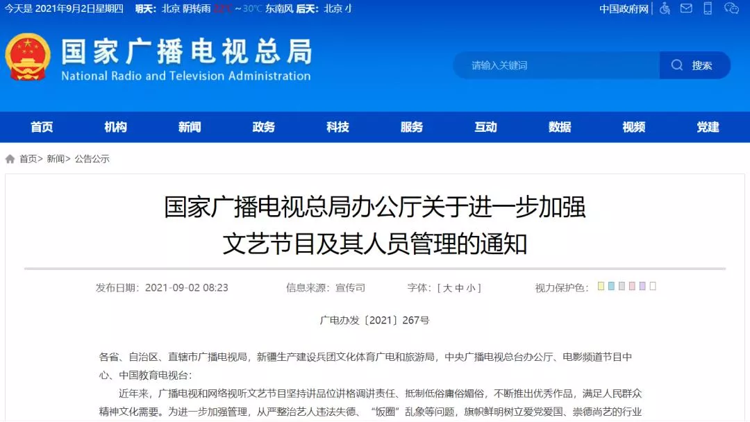 要求進一步加強文藝節目及其人員管理,從嚴整治藝人違法失德、“飯圈”亂象等問題,樹立崇德尚藝的行業風氣。