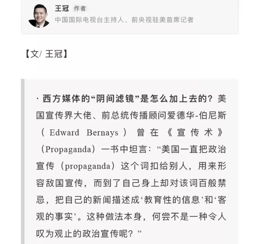 近日,央視前駐美首席記者王冠發文稱,在其8年駐美生涯中,從白宮到國務院,從總統大選到中期選舉,他隨時隨地都能體會到“美式話術”的惡意。此話一出,立即引來廣大網民的共鳴與熱議。