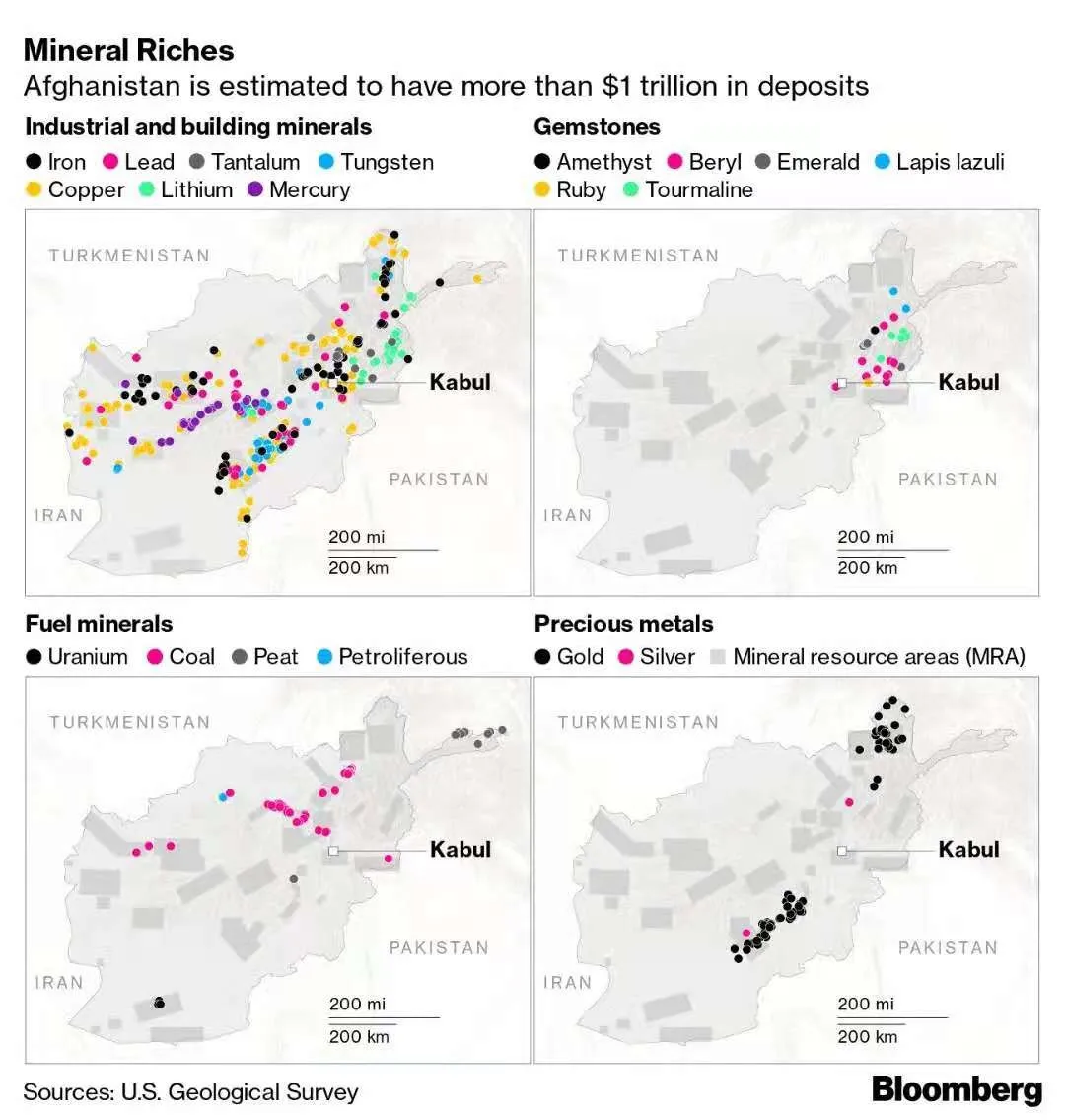 因此,阿富汗對中國而言存在着機遇。穆賈希德在媒體訪問中提到了阿富汗自身的礦產資源,他表示阿富汗有豐富的銅礦資源,在中國的參與下,可以重新投產、進行現代化改造。事實也的確如此,早在2010年美國人就評估認為阿富汗有價值約1萬億美元的未開發礦產資源,美國地質調查局(USGS)認為阿富汗存在22億噸鐵礦石、6000萬噸銅、140萬噸稀土等礦產,甚至有其他機構推測礦藏價值可能達到3萬億美元。五角大樓甚至表示阿富汗的鋰礦資源極為豐富,甚至有機會成為“鋰礦中的沙特”,影響全球的電池市場。2020年,尚未掌握全國政權的塔利班,依賴礦產所創造的收入已經超越了毒品,成為其新的財富來源,早已證明了礦產開發對於阿富汗經濟的獨特作用。2008年中冶公司在阿富汗艾納克銅礦的招標中成功中標,獲得該銅礦30年的開採權,雖至今尚未啓動開發,但已足以説明中國可以在未來通過礦產開採助力阿富汗的經濟建設。