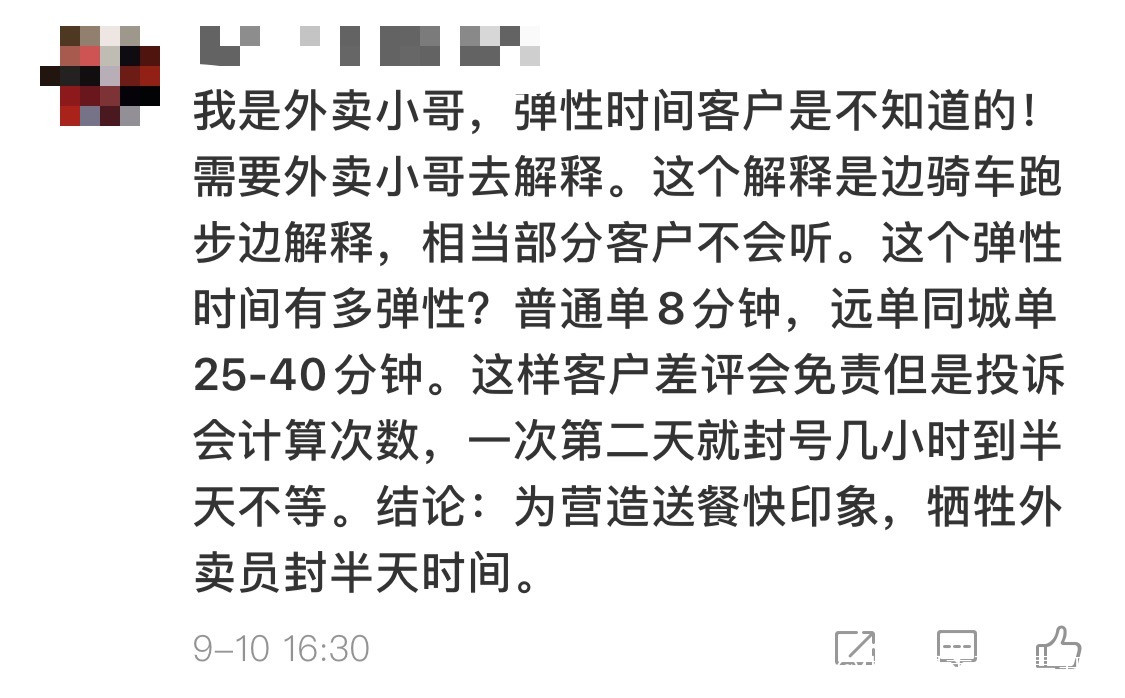 對於彈性時間,評論裏還有外賣小哥親自講述經歷。