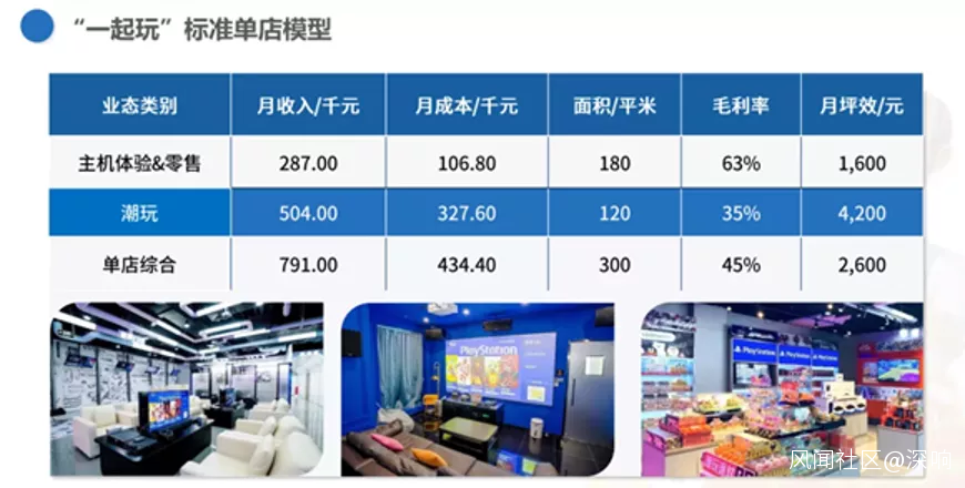 在新店已有的基礎上,創夢天地仍在不斷迭代其單店模型,且已取得成效:將300平米的標準單店模型數據拆解來看,門店主機零售及體驗部分的月收入目前達到28萬,毛利率為63%,月坪效為1600元/月。潮玩業務部分單月收入約50萬,月坪效達到4200元/月。單店每個月的總收入能達到79萬,毛利率45%。
