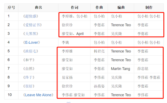 他們兩位作出的比較經典的曲子,如:
