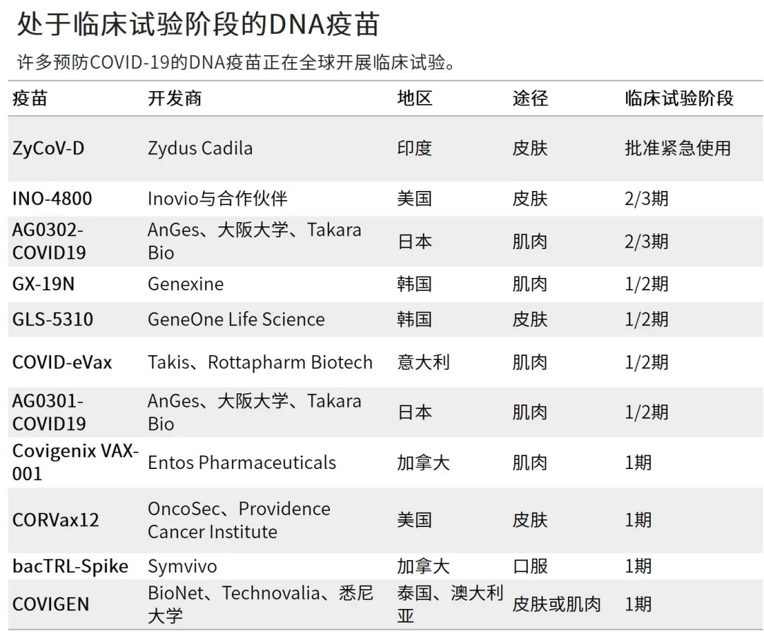 目前,全球共有十多種新冠DNA疫苗正在接受臨牀試驗的檢驗,還有至少同等數量的新冠DNA疫苗正處於研發早期。針對許多其他疾病的DNA疫苗也在開發中。