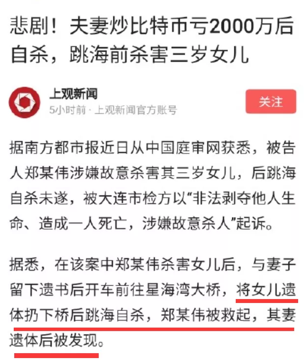 諷刺的是,鄭某偉一家三口跳海自殺半年後,比特幣價格暴漲5倍!