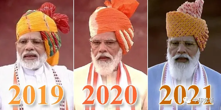 連續三年莫迪在印度獨立日的裝扮,圖源:中印梵華