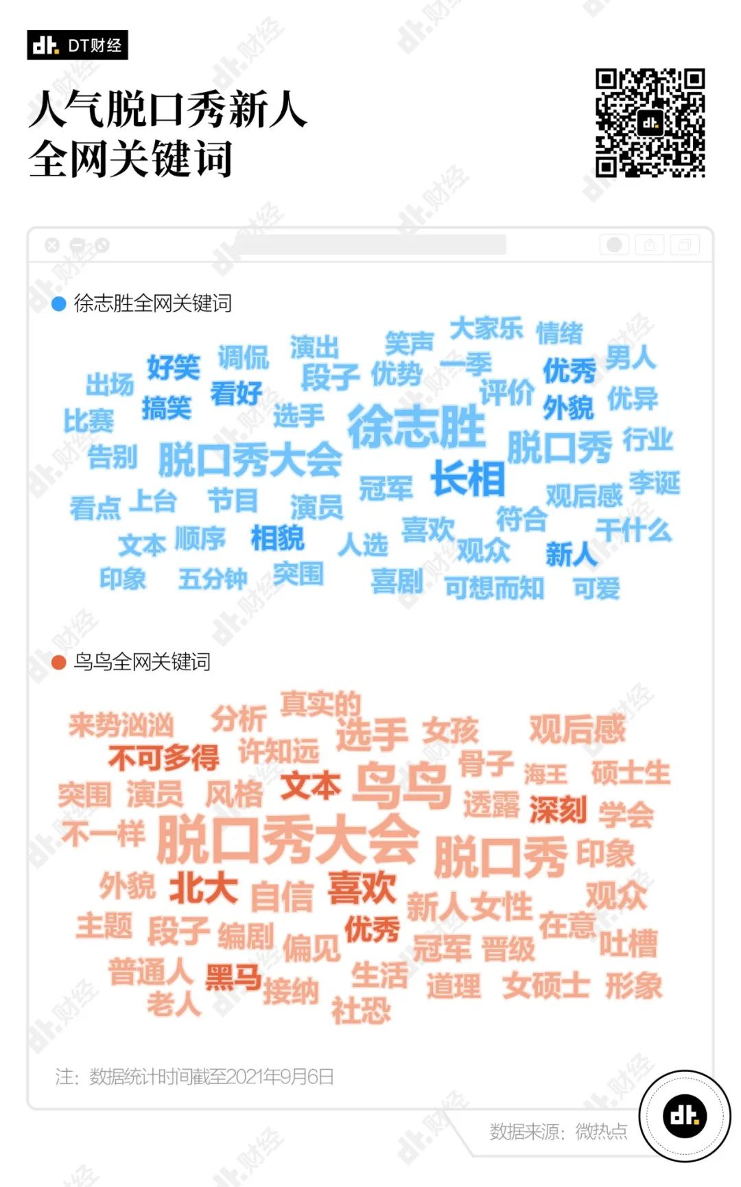 從全網熱議關鍵詞來看,“長相”“相貌”“外貌”是徐志勝的主要“優勢”,眯着縫的吊梢眼、稀疏的在前額卷出曲線的頭髮,還有塌鼻樑和厚嘴唇,再加上特別的口音,用李誕的話説是特別和諧,觀眾則用“好笑”和“笑聲”表達了最大敬意。