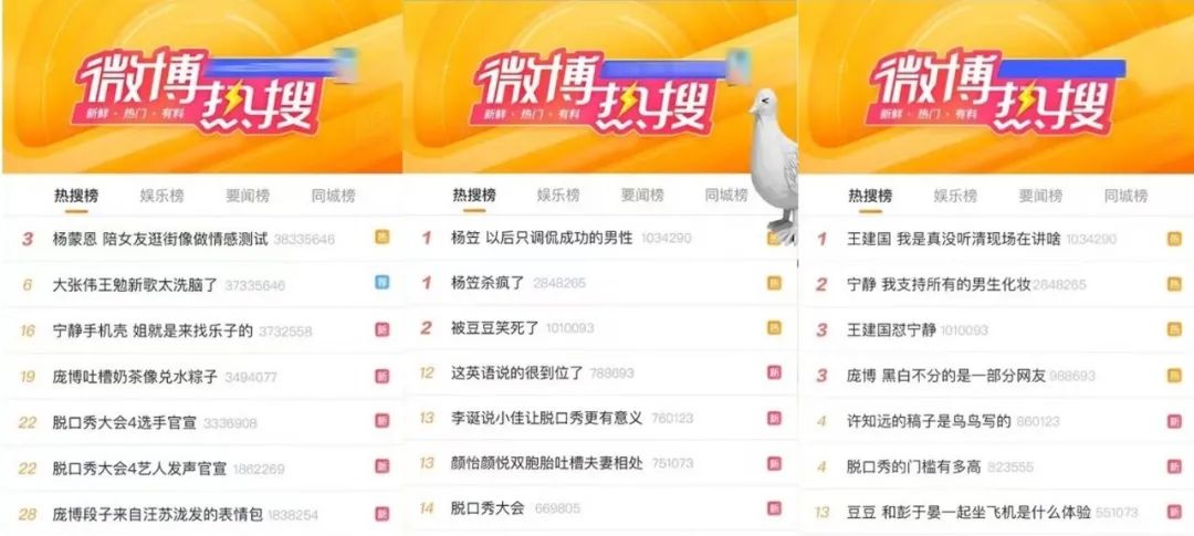 很快,這三位演員都登上熱議話題榜單,社交平台上飄滿了脱口秀演員們的婚戀段子。