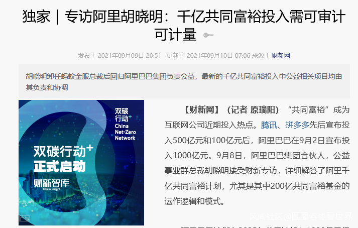 阿里合夥人胡曉明:千億共同富裕投入需可審計可計量_風聞