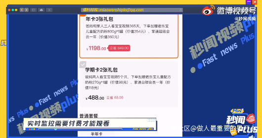 孩子當時上的時候幼兒園有監控,一年的150,三年下來好像有優惠。但大多數的家長都只買了一學期或者一年。
