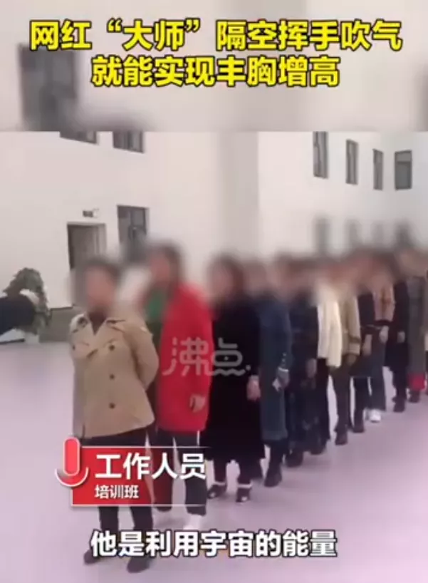 隔空就能豐胸,畫符包治百病,吹口氣就能治乳腺肌瘤、骨折,抓空氣放入學員腦袋可為其增智。