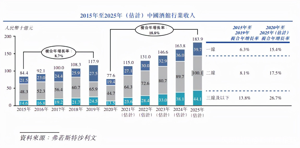受益於中國居民可支配收入的增加和中國酒館數量的增長,中國酒館行業的總收入由2015年的約人民幣844億元增加至2019年的約人民幣1,179億元,複合年增長率為8.7%。海倫司招股書顯示,自2020年至2025年,中國酒館數量的複合年增長率預計將達到10.1%。