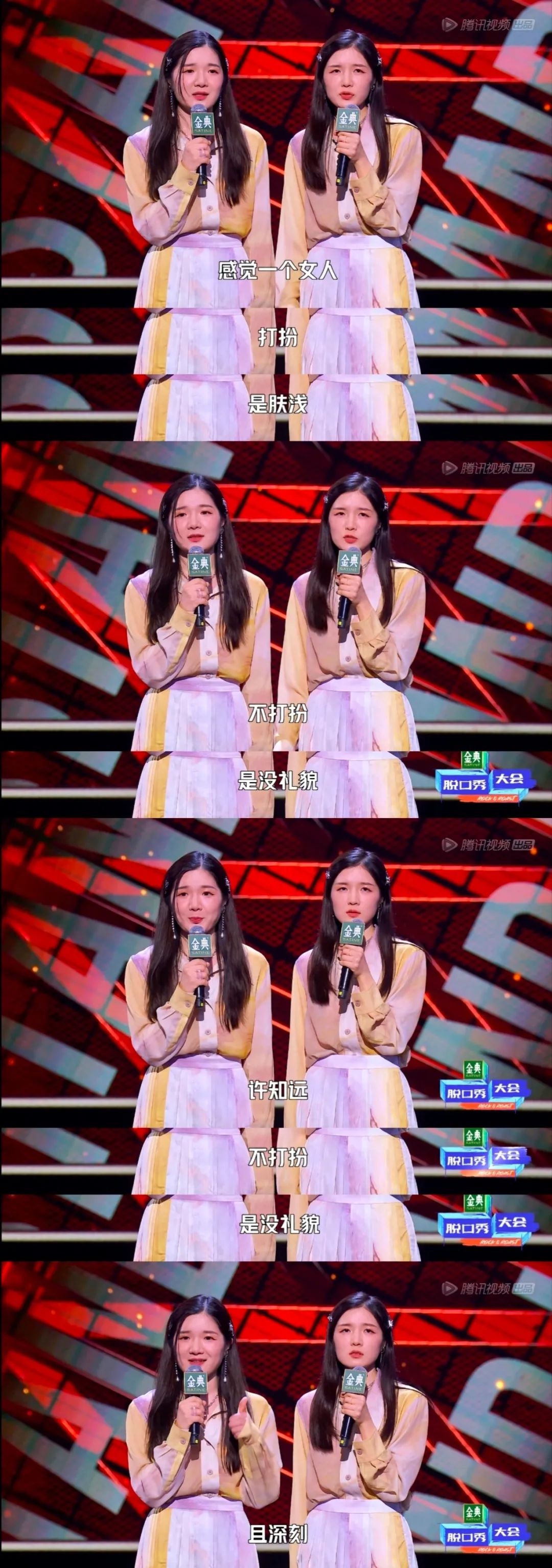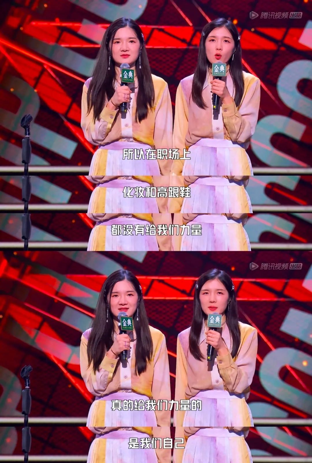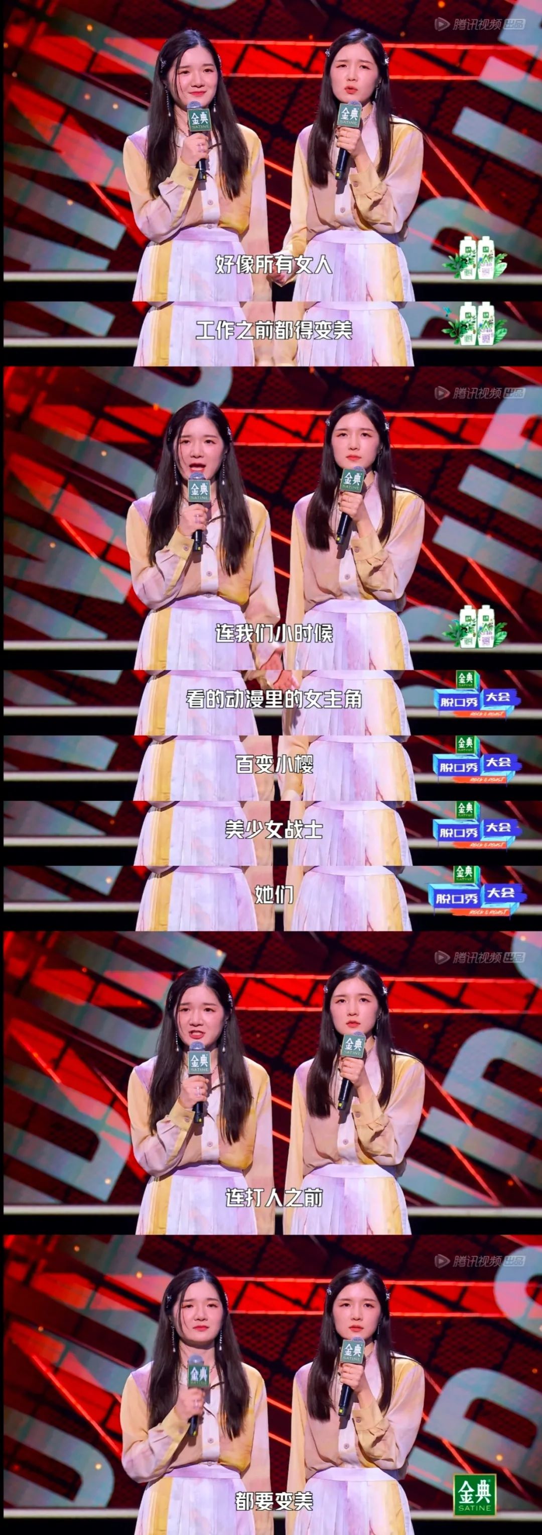 顏怡顏悦的主題是“職場”,她們從職場的性別歧視,講到女性在職場的容貌焦慮。