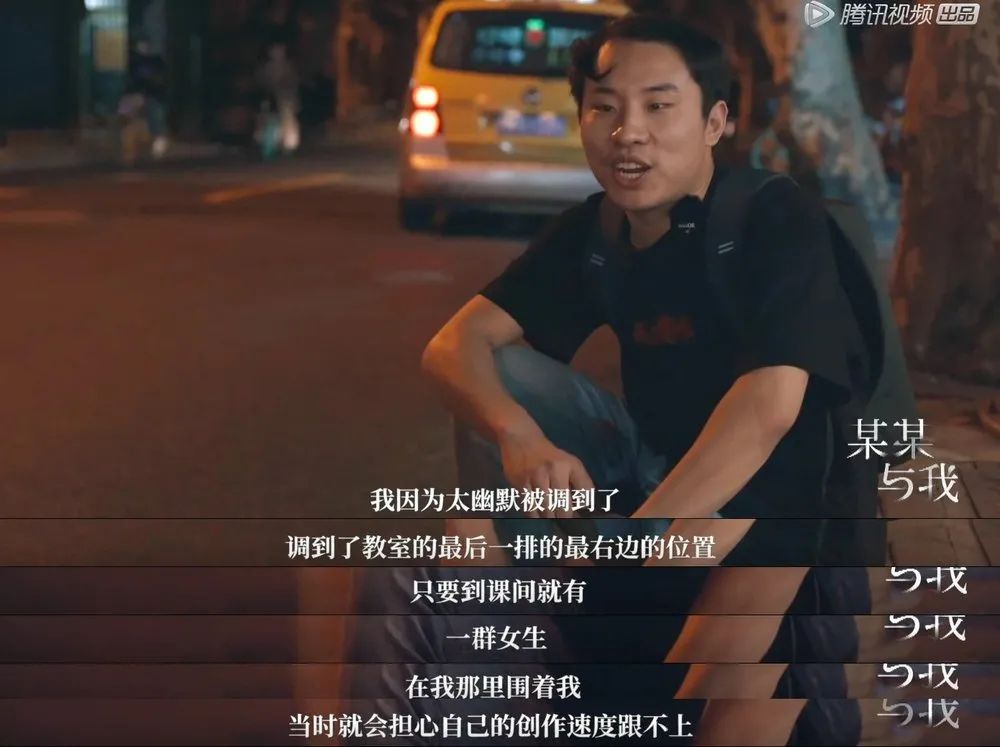 **直到高中,他發現了自己的幽默感。**他因為太幽默,被調到了課室的最後一排。一到課間,就有一羣女生圍着他,要聽他講段子。