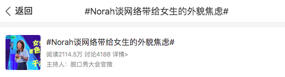 她的脱口秀,就是從一個普通女生的立場出發,講她是如何看待那些社會上傳達出來的“容貌焦慮”。
