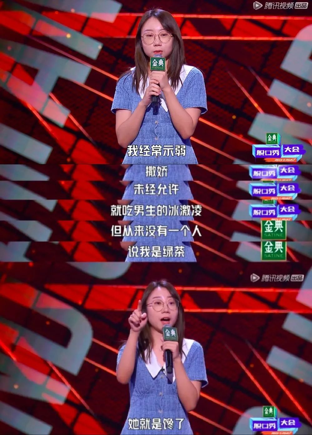 性格內向的她,講脱口秀的時候,總是悶悶的,一臉平靜。但就是在她波瀾不驚的語調下,經常會發出犀利的言論。