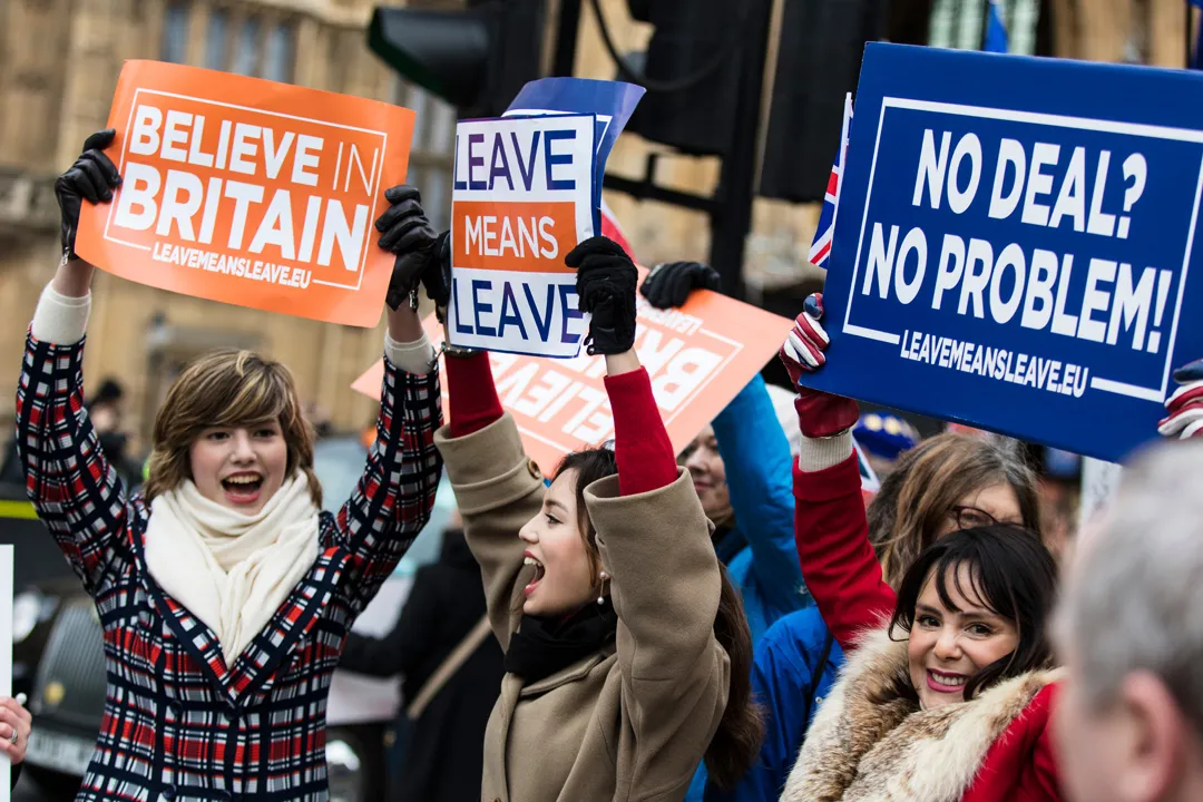 ▲2019年1月,脱歐支持者在倫敦市中心遊行。
