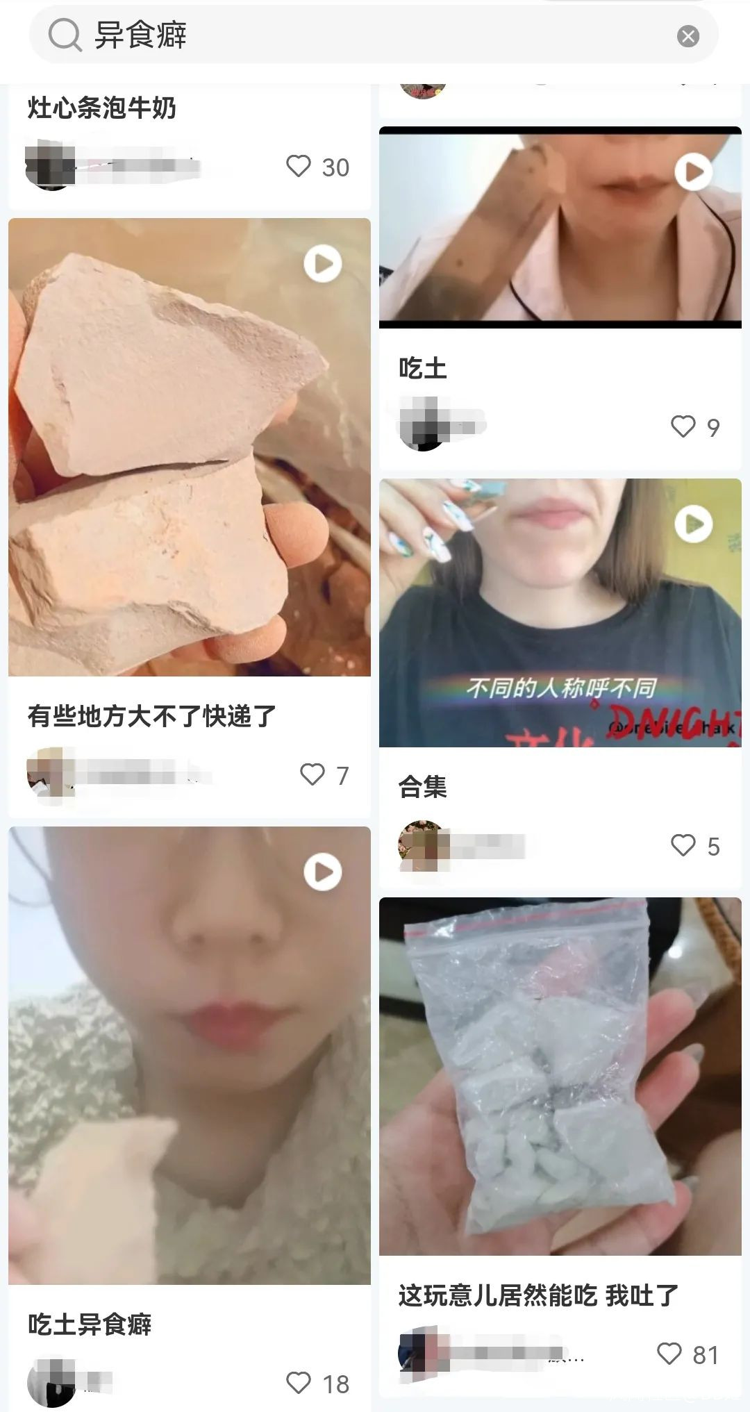 “異食癖”這個詞對於大多數人來説不算前所未聞,只是我們習慣把它看做是千萬分之一的少數派,而且只停留在咬手指、吃頭髮的層面上。沒想到如今“吃土”異軍興起,居然已經完全佔領了淘寶以及各大短視頻、論壇的搜索詞條。