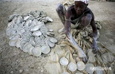 國外的吃法就更多了。很多媒體去年都報道過海地人民製作泥土餅乾的故事,他們會將泥土和河水或者雨水混合形成泥漿,過篩,再加入少量黃油、鹽、糖調味,最終目的也是為了飽腹。