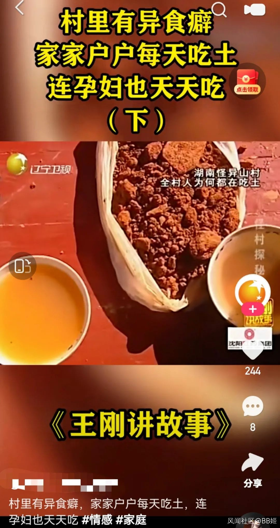 **“已經吃了一半了,很厚實,膠泥顆粒很豐富,有嚼勁。”**乍一看以為聊的是厚切烤五花肉,抬頭看看圖片才肯定,這説的是土沒錯吧?是那種路邊地上隨時都能看到的那種髒兮兮的土沒錯吧?