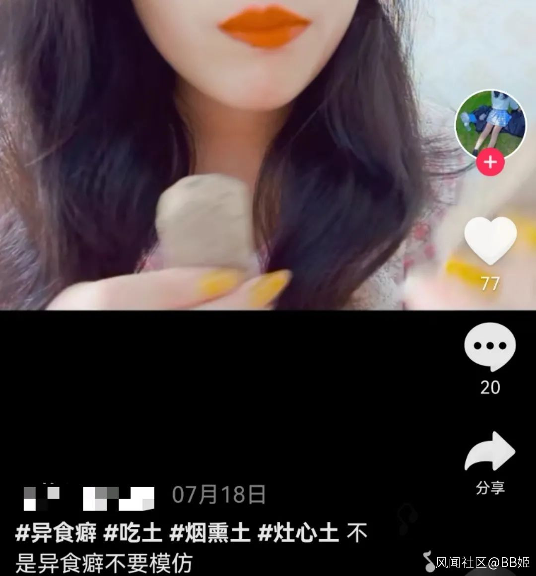 他們解釋説,“饞”是因為吃土會上癮。很多異食癖患者最開始也只是因為壓力或缺鐵缺鋅開始嘗試,有了第一次之後就再也停不下來。