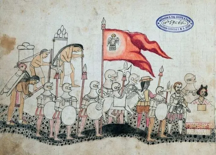 16或17世紀美洲原住民創作的關於“征服墨西哥”的繪畫手稿。