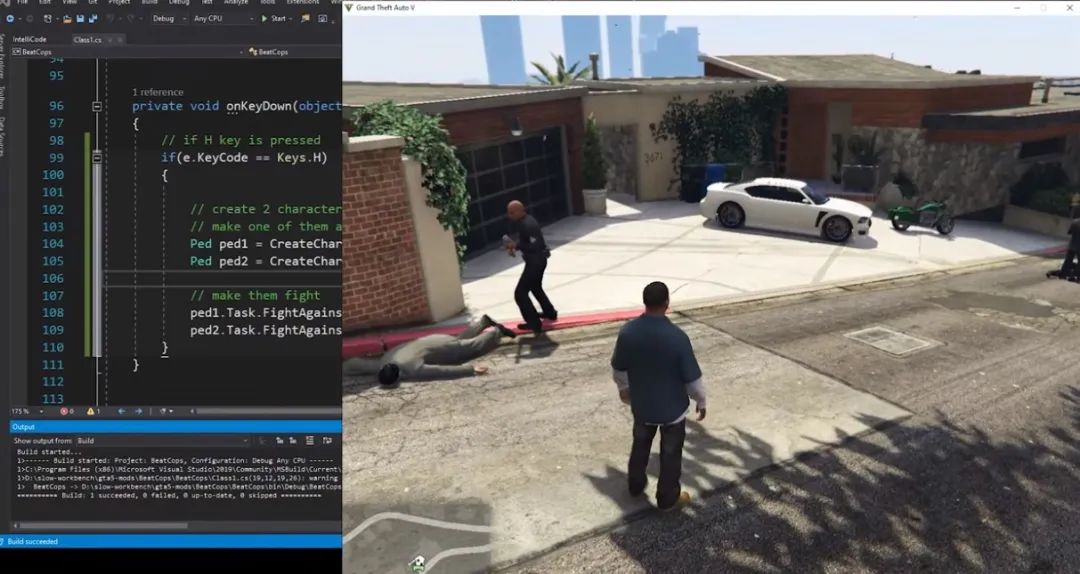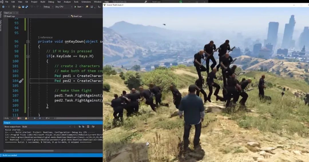 “GTA”系列有一個龐大的Mod社區,許多Mod創作者經常會想方設法在遊戲裏做一些令人意想不到的事兒,在這裏面,生成各種角色並讓他們互相打鬥屬於相當簡單的任務,但厄爾很快發現,在“GTA”裏,有一類NPC不能互相攻擊,那就是警察。