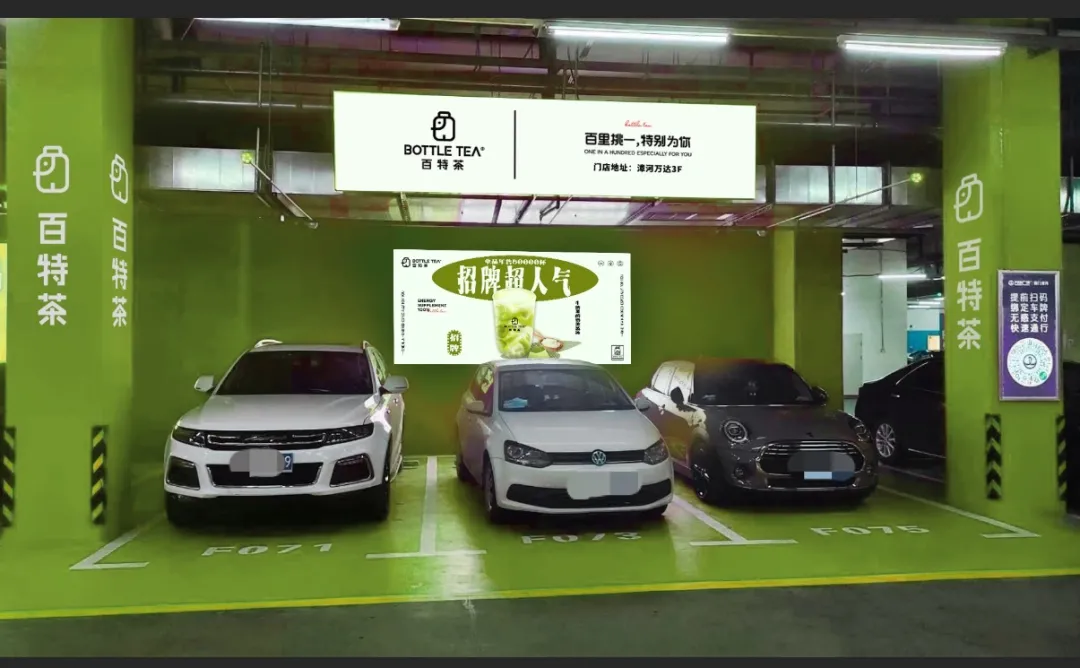荊門品牌百特茶,今年8月在萬達廣場的地下停車場,做了一個“車位冠名”。