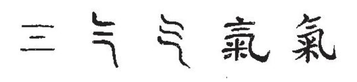 類似的,“氣”字也是同樣的情況,但是演變過程要更復雜一些。甲骨文的“氣”就是三條橫線,表示空中的氣流。金文篆文上下兩橫增加了曲折,就與簡體字相似了。但後來的隸書與楷書中錯誤地寫成了表示食物的“氣”字,所以這其實是個錯別字。而為了表示“氣”的本義,又增加了一個形旁“食”,成了“餼(餼)”,這個字的繁體就有了兩個表示食物的形旁“食”與“米”,你説繁不繁?