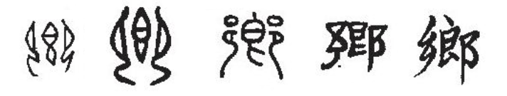 文章開始時段子裏的“鄉(鄉)”字,正好也是一個部件類化的例子,右邊部分根本就不是“郎”!鄉其實是“饗”的本字,在甲骨文裏是兩個人相對而坐,中間隔着一個盛食物的器皿,意思是用食物來招待客人。只是在演變時中間那個器皿合着右邊的人錯寫成了“郎”,本來鄉里就沒有“郎”,只有好酒好菜,編那種段子的人水平不咋地,卻讓不少人上了當。