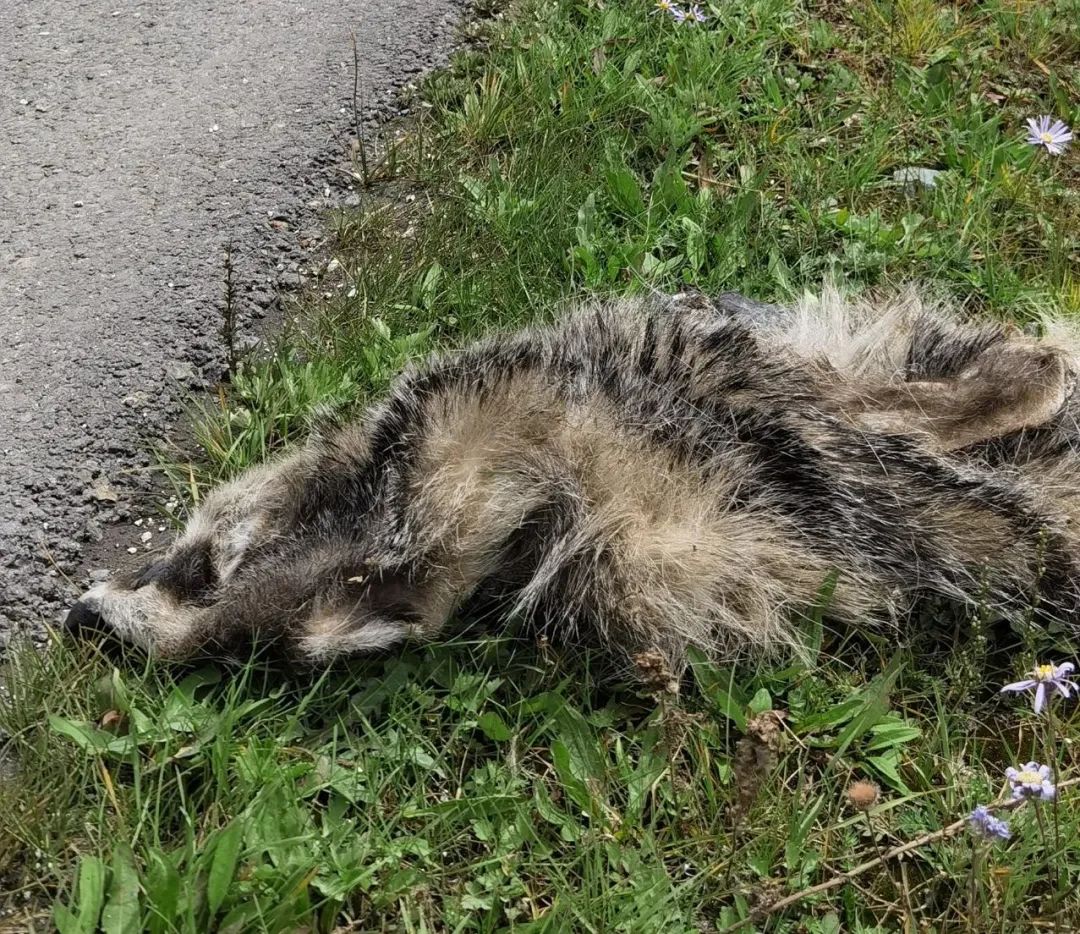 2020年8月31日在花湖加油站附近一隻被軋死的狗獾 圖片提供:郎木寺格桑馬隊