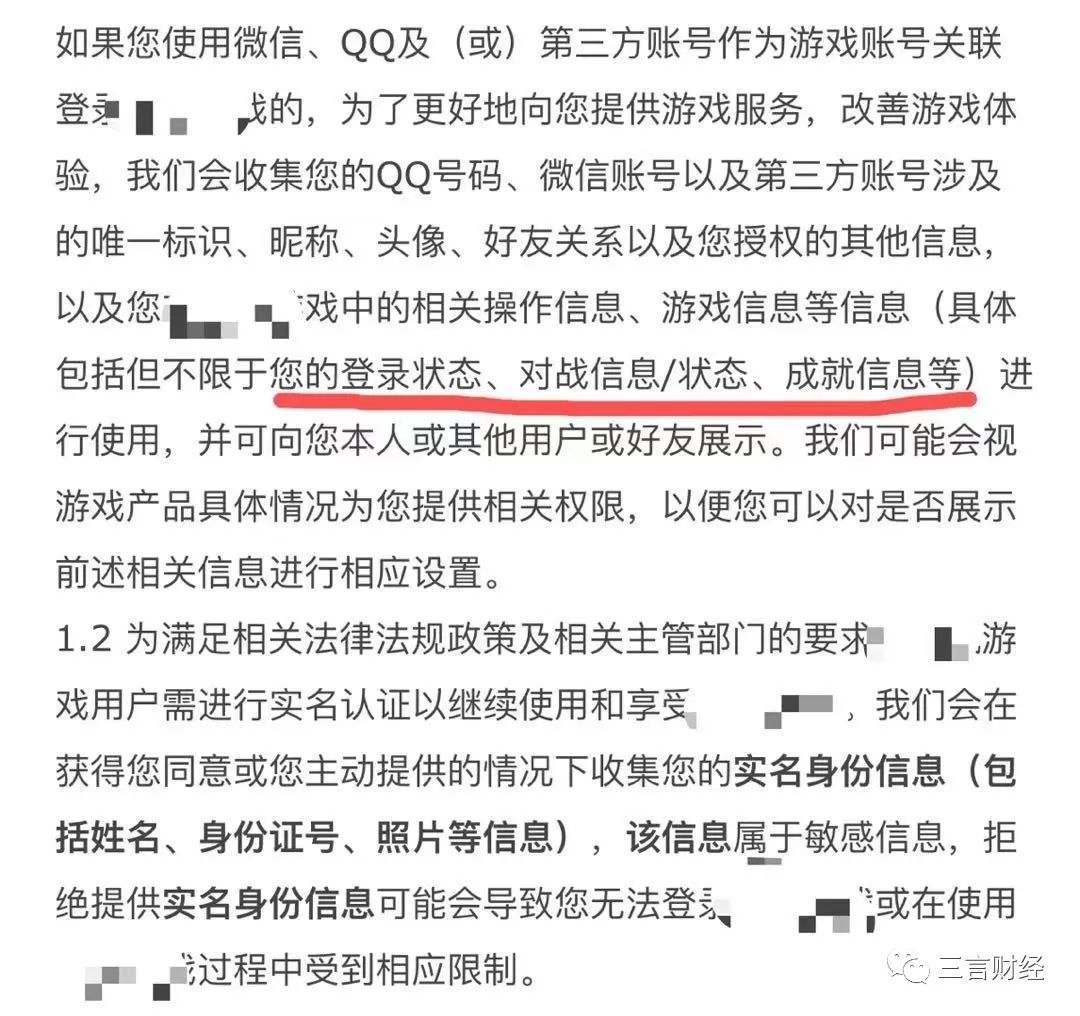 相關隱私協議指出,平台會收集用户的遊戲操作等信息,包括對戰信息、成就信息。主要是用來向自己或好友展示的。