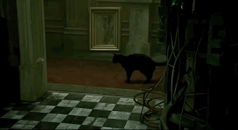 《黑客帝國》,尼奧在樓梯口遇見一隻黑貓。