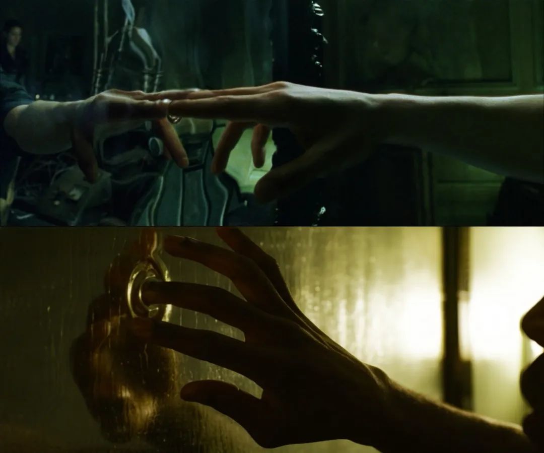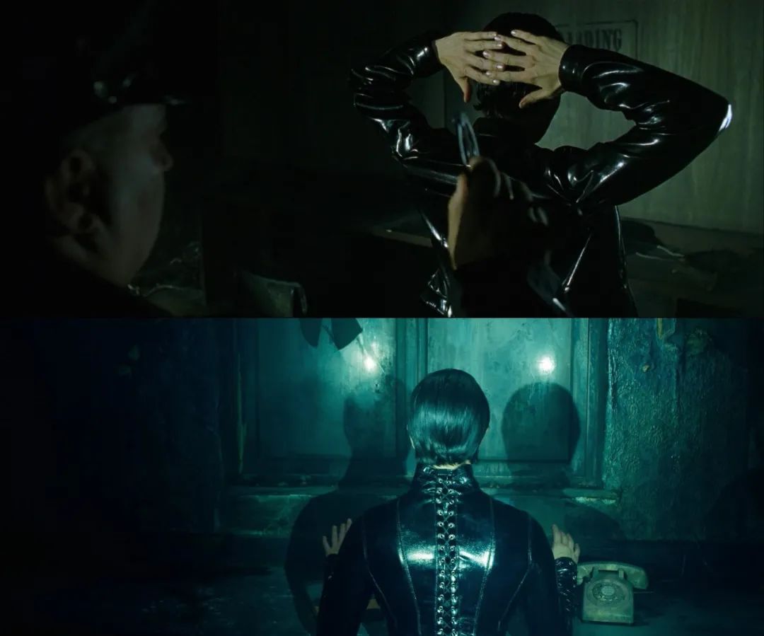 這些鏡頭都和《黑客帝國1》如出一轍: