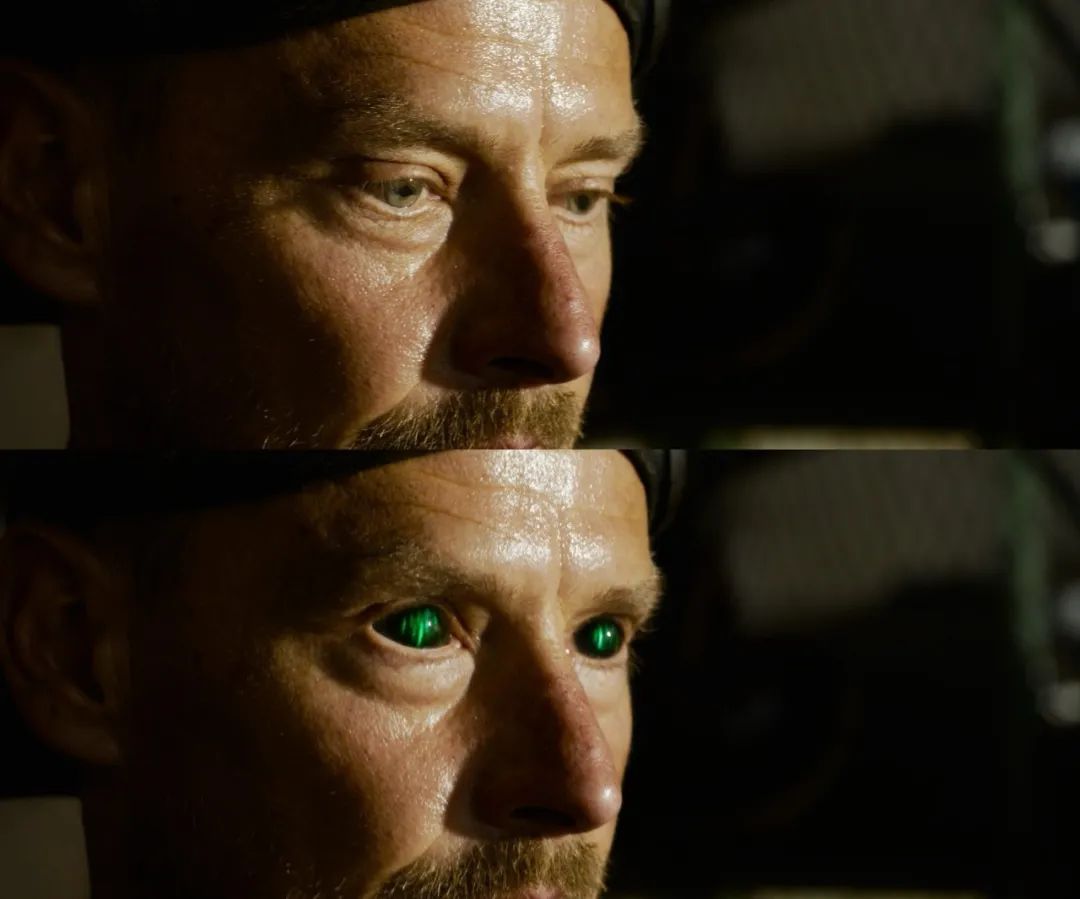 一個樣貌正常的男子,眼睛裏突然閃爍綠色的代碼。